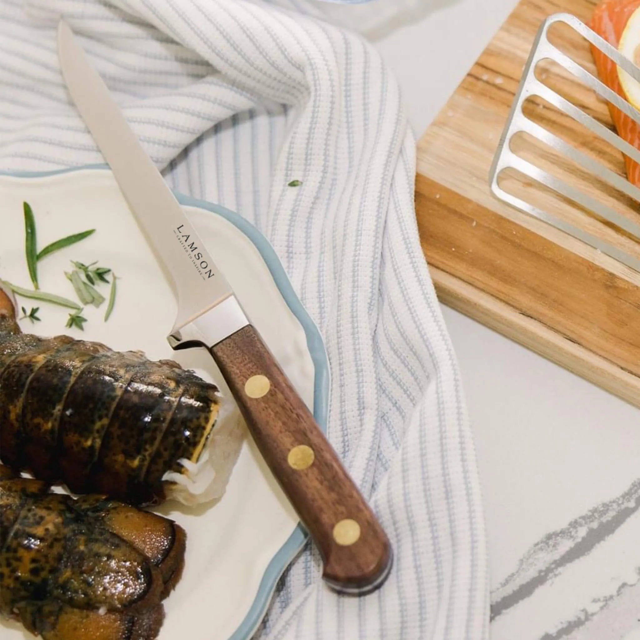 A fillet knife is primarily used to remove the bones from fish or to trim meat from the bone, making it an essential tool for butchers, fishmongers, and home cooks who want to prepare their own meat or fish. The flexibility of the blade allows it to curve along the contours of the bone or fish, making it easier to remove the flesh without damaging it.