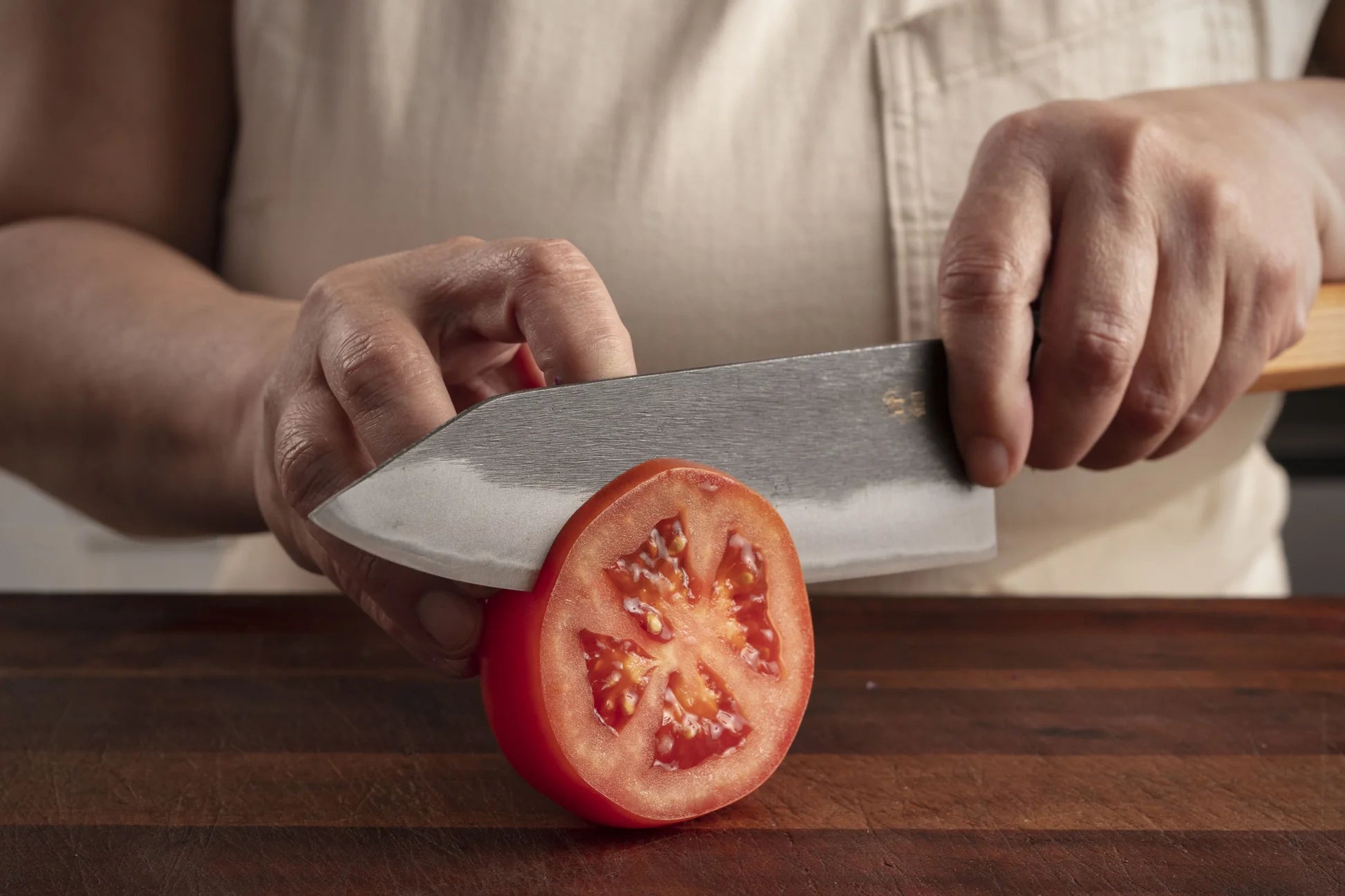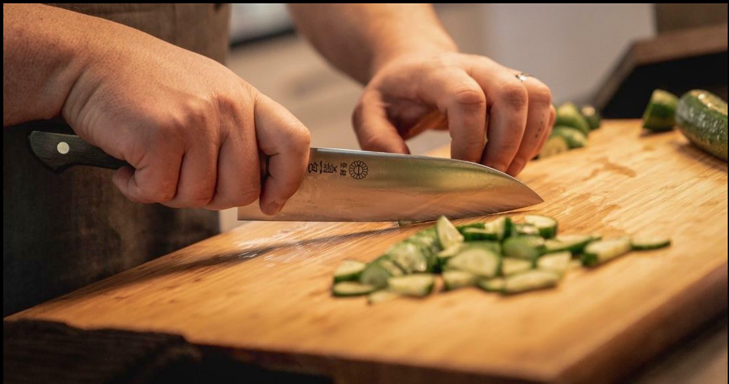 A Santoku knife is a versatile Japanese kitchen knife known for its name meaning "three virtues," referring to its proficiency in slicing, dicing, and chopping. With a blade typically between 5 and 7 inches, it is shorter and lighter than a traditional Western chef's knife, making it easy to handle and ideal for a variety of tasks in the kitchen.