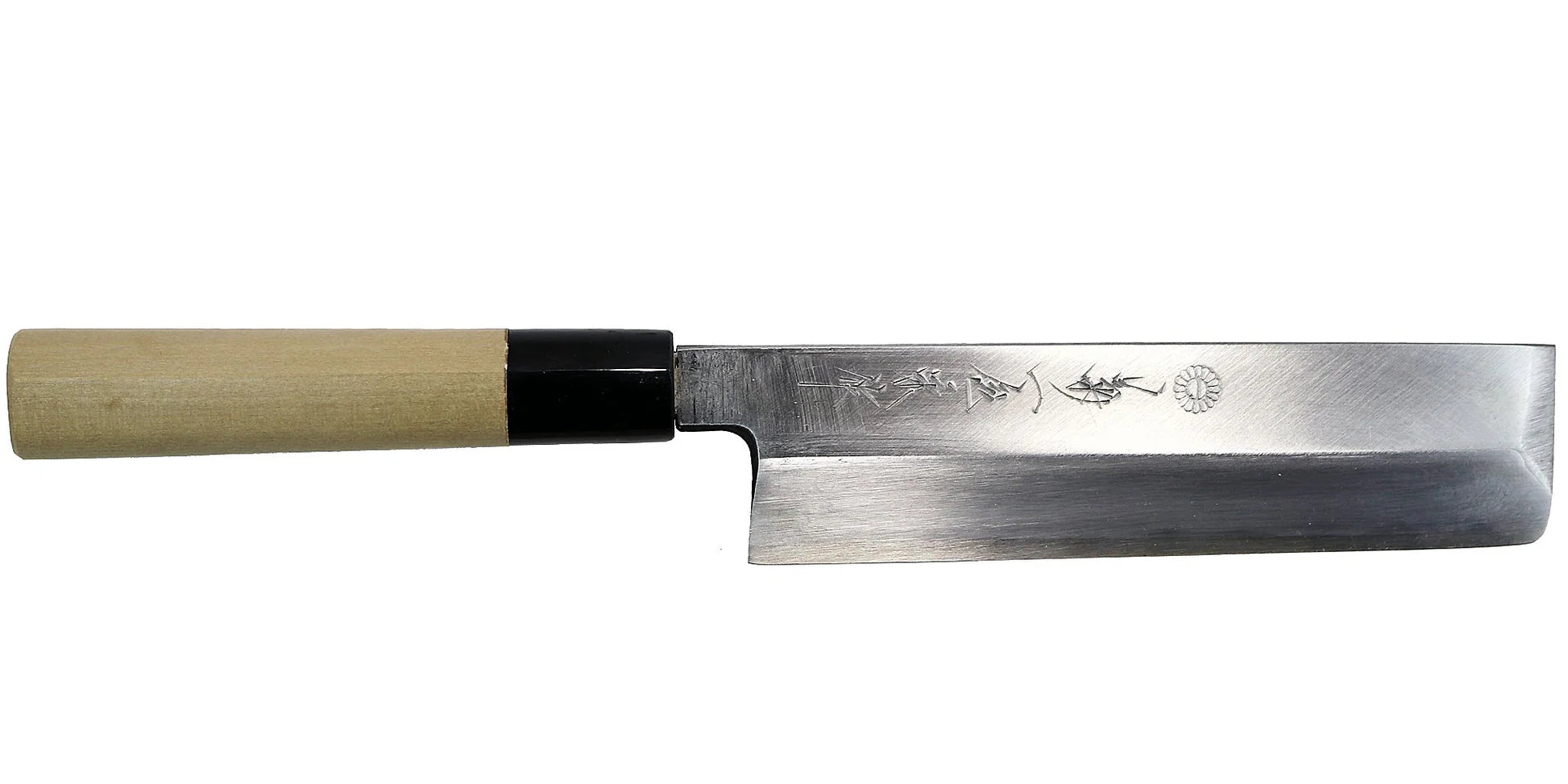 The Usuba knife is primarily used for cutting vegetables, particularly those that are delicate or require precise cuts, such as daikon radish, cucumbers, and carrots.The blade is also slightly concave, which allows it to make very thin, precise cuts without damaging the vegetable's structure. Maintaining shape and texture is important in Japanese cuisine where presentation is highly valued.