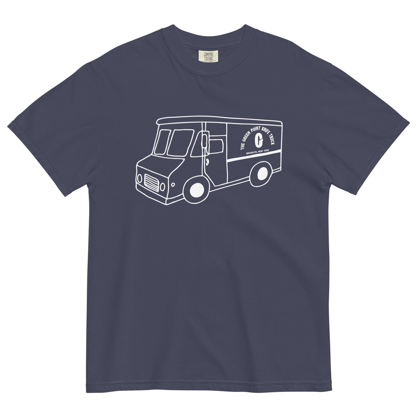 Introducing The Green Point Knife Truck Tee, a tribute to our 50yr old GMC delivery van turned into a mobile knife sharpening service in North Brooklyn. This tee is crafted with care. A thick and structured fabric offers a comfortable, stylish fit, made from 100% breathable ring-spun cotton and garment-dyed.